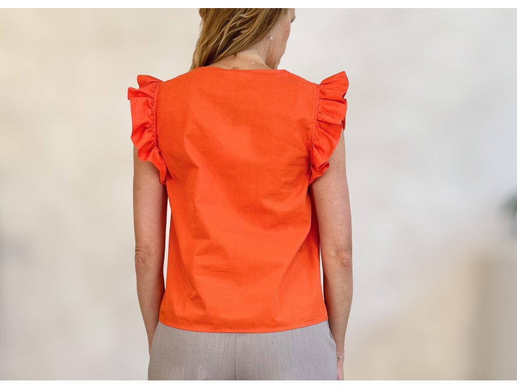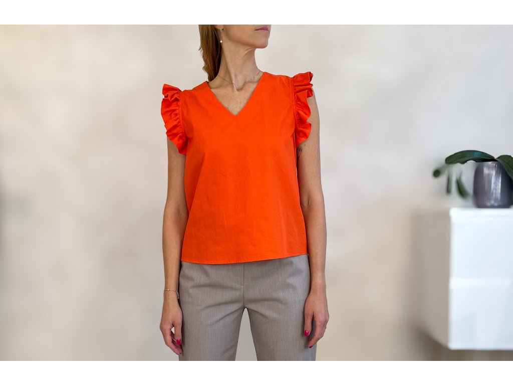 Bavlněná červená halenka, kterou rozzáříte svůj letní outfit. Díky svému střihu je vhodná spíše pro postavy s menším poprsím.