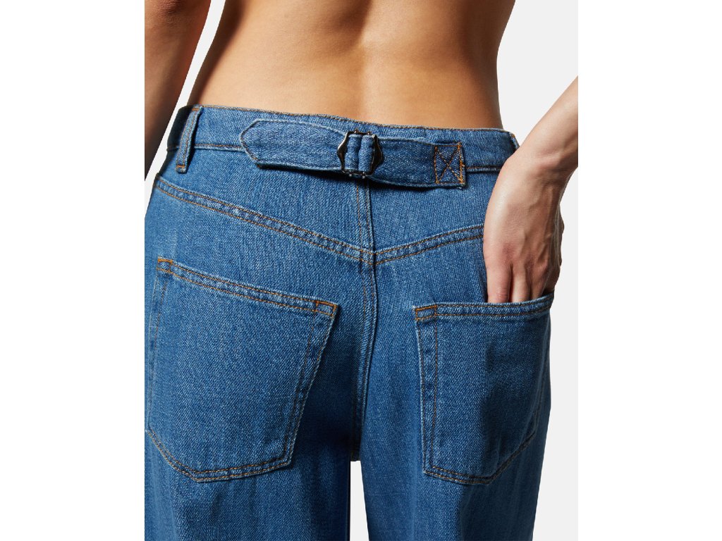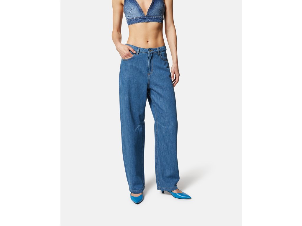 Kalhoty z jemné jeansoviny, ideální na jarní a letní období. Díky netradičnímu střihu, působí velice mladistvě a šik. Jsou vhodné pro ženy s užším pasem.