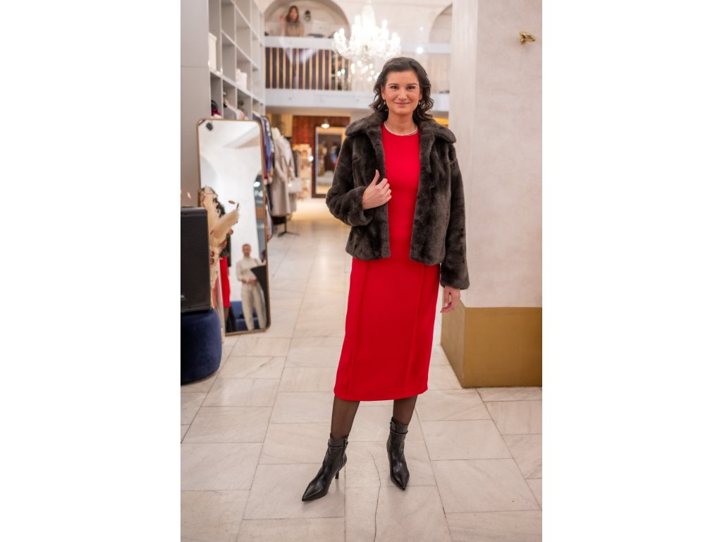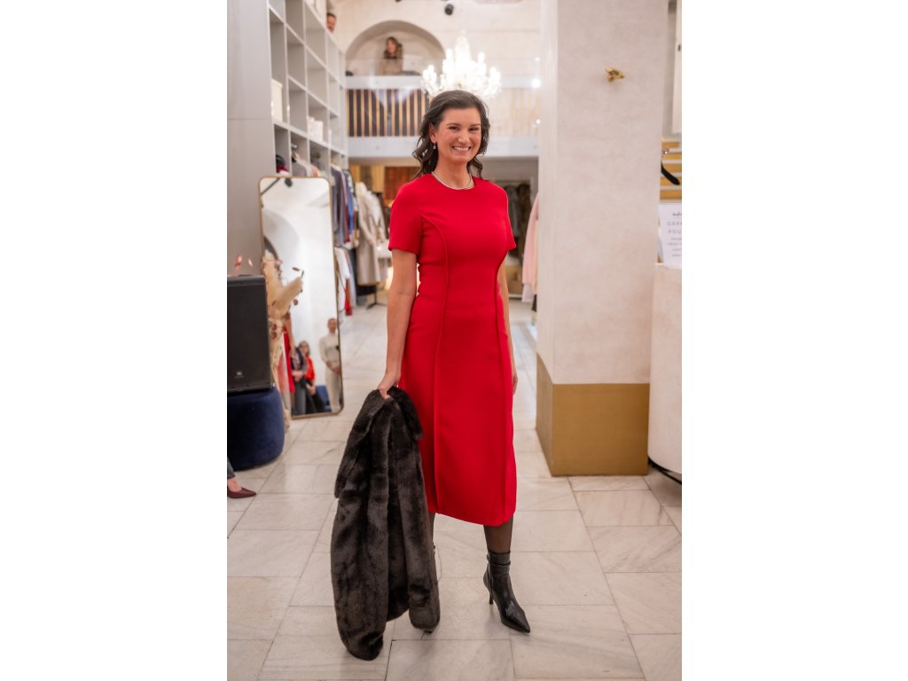 malinová je silná barva, proto doporučujeme kombinovat šaty s neutrálními doplňky (černá, béžová, bílá, zlatá). Pokud chcete odvážnější look, zkuste barevné kontrasty – například fialovou nebo modrou kabelku.